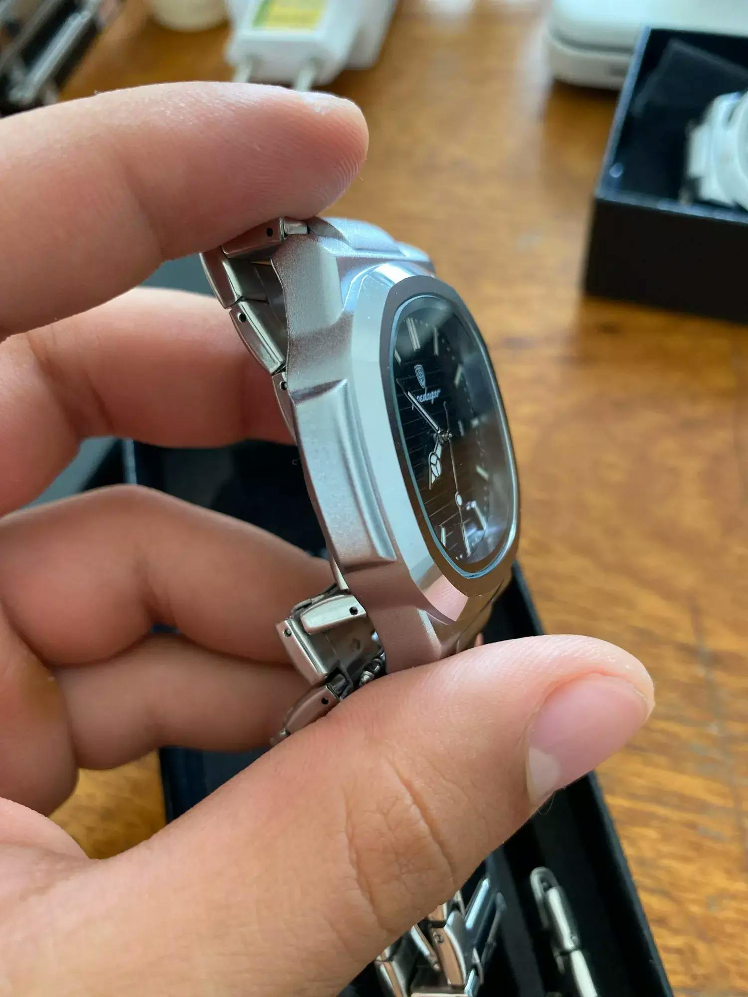 Wykonany z wysokogatunkowej stali 316L, stosowanej przez prestiżowe marki zegarmistrzowskie jak Patek Philippe czy Rolex. Gwarantuje trwałość, odporność na korozję i luksusowe wykończenie.