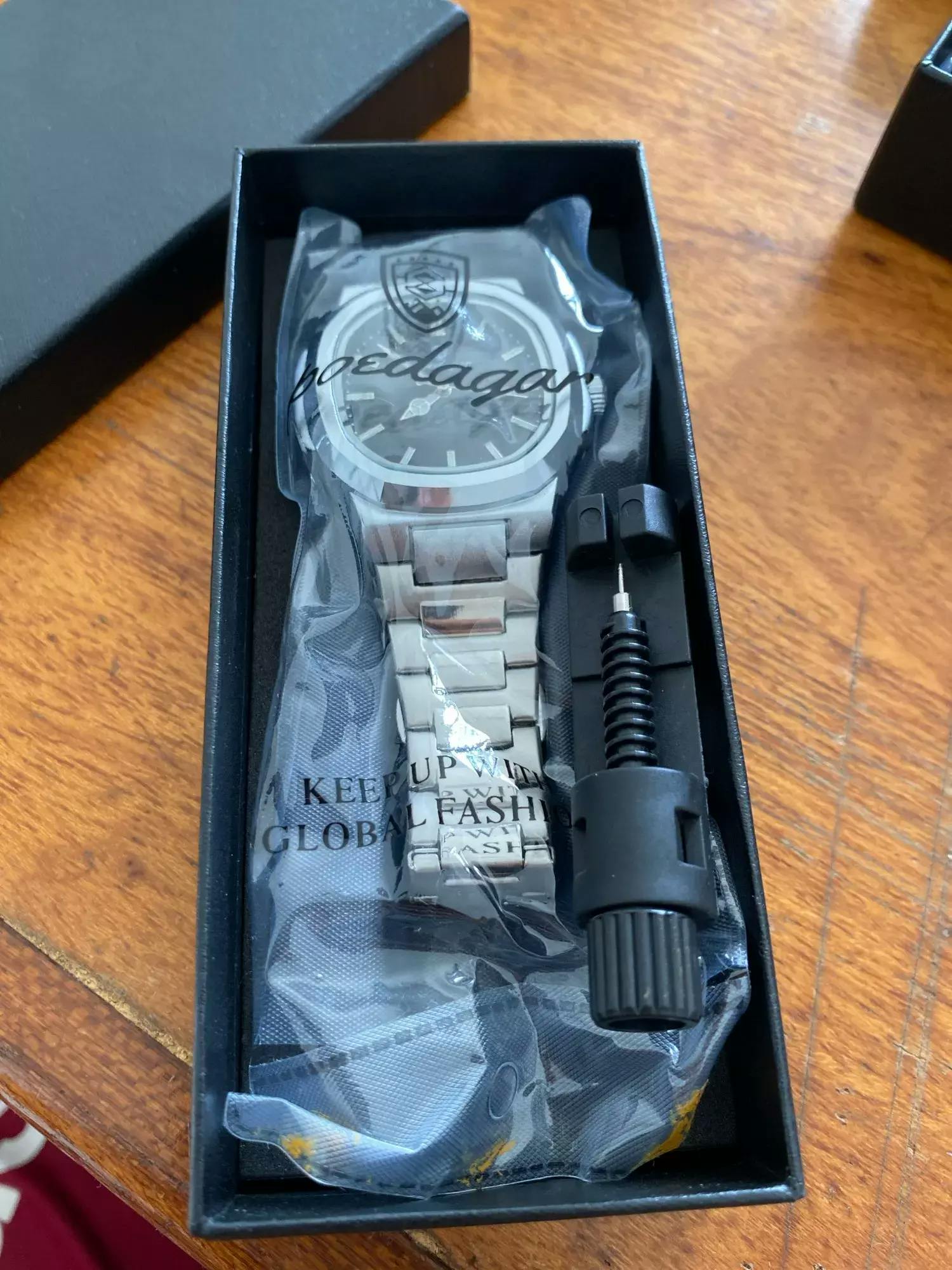 Regulowana bransoleta w uniwersalnym rozmiarze oraz narzędzie do samodzielnej regulacji w zestawie.